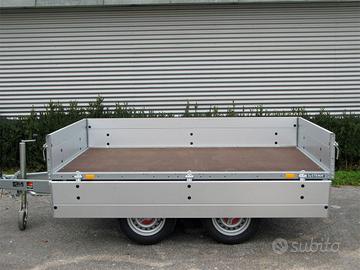 Rimorchio pianale fisso costruzione tedesca brand STEMA con giro sponde in alluzink altezza 30 cm.