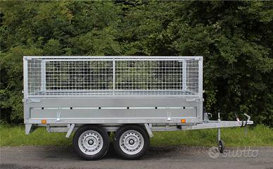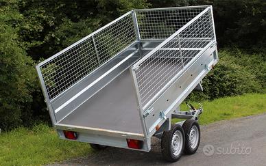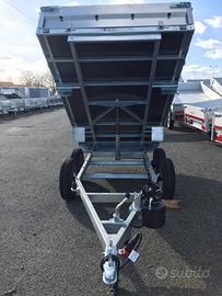 Rimorchio francese brand Lider 2 assi non frenati massa complessiva 750 Kg. Tara 335 Kg Cassone ribaltabile con martinetto idraulico 253 x 147 cm sponde zincate altezza 30 cm. Prezzo immatricolato euro 2.890,00 + iva