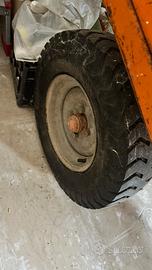 Si tratta di un rimorchio agricolo di piccole dimensioni, pensato per essere trainato da una motozappa o un piccolo motocoltivatore.