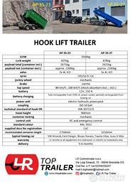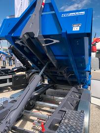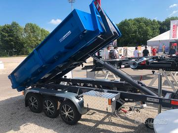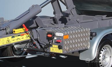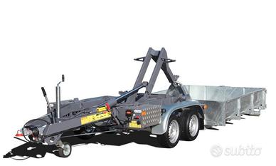 Vendo rimorchio carrello per autoveicoli, ad uso professionale con cassone scarrabile. Massa complessiva 35 q.li. Portata utile in funzione del cassone circa 22 q.li Capacità di sollevamento 2.685 Kg. Scarrabile rispondente ai requisiti DIN 30722 pista da 1060 mm. altezza gancio 900 mm. Lunghezza container 3200 mm. Timone e assali AlKo. Angolo di ribaltamento 50°. Pompa elettroidraulica comandata da telecomando con filo e telecomando wireless, compreso caricabatteria di mantenimento. Ideale per imprese edili in ambito delle ristrutturazioni e per il mondo della manutenzione del verde quali giardinieri e paesaggisti. Per maggiori informazioni e prezzi inviare mail completa con i vostri dati.