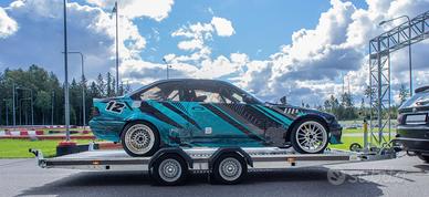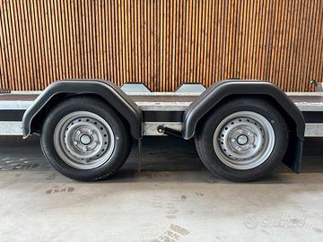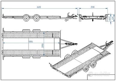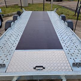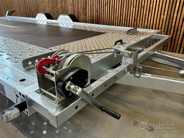 Rimorchio ribassato per trasporto auto sportive, fuoristrada e furgoni. Massa complessiva 3500 kg. Portata utile misure utili 500 x 209 cm.