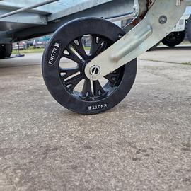 La configurazione con ruote esterne consente un baricentro basso rendendo il rimorchio piú stabile, meno usura dei pneumatici, meno usura dei cuscinetti.