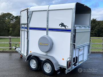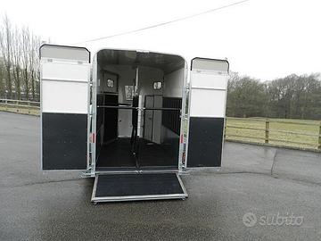 Rimorchio trasporto cavalli Ifor Williams style con apertura posteriore all'americana a due ante o apertura a ponte classica.