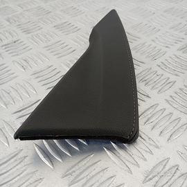 Rivestimento interno Alfa Romeo Stelvio OEM 156132500, componente originale di finitura abitacolo per modelli dal 2016 al 2025. Si tratta di una modanatura di forma triangolare realizzata in plastica tecnica ABS, con superficie esterna nero/grigio scuro effetto pelle e cuciture tono su tono, mentre il lato interno è blu scuro. Il pezzo è datato marzo 2021, provvisto di codici identificativi completi e compatibile con diversi punti di montaggio nell’abitacolo, come base vetro porta o plancia. Struttura integra, priva di crepe, con incastri originali funzionanti, pronta per essere installata senza modifiche.Ricambio noto come finitura pannello interno, modanatura cruscotto, inserto interno porta, copertura plastica abitacolo Alfa Romeo