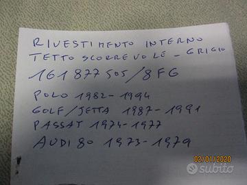 RIVESTIMENTO INTERNO, ORIGINALE E NUOVO, per TETTUCCIO APRIBILE scorrevole grigio per VW POLO, GOLF, PASSAT, AUDI 80 ANNI 1980 - 1990