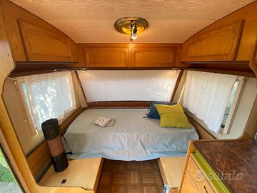 Vendesi splendida roulotte Tabbert Regent 490 Vintage anno 1989, marchio tedesco storico, con documenti e impianti funzionanti, caratterizzata da elevata qualità costruttiva e interni originali in legno massello.