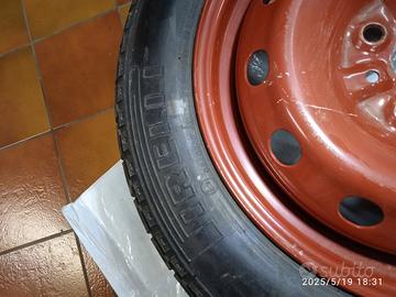 Per inutilizzo nuovissima mai usata ruotino di scorta Pirelli 135/80 B 14 -80 P proveniente dalla mia Fiat Punto quattro fori con interasse mm.98/100 completa di accessori: crick con relativa chiave,chiave per smontaggio ruote,gancio di traino.Gomma tubeless rinforzata.