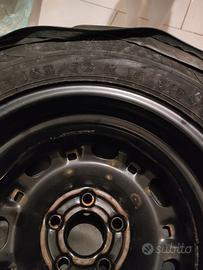 Vendo intero kit ruota (non ruotino, una vera gomma da usare sempre) di scorta. Il kit include: accessori per il montaggio e smontaggio nel suo comodo contenitore, ruota (165/70 r14) NUOVA mai usata, cerchio in ferro, borsa morbida con zip. Tutto nuovo, mai usato come ben visibile in foto. No spedizione, consegna a mano.