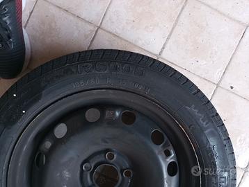 Ruota di scorta mai usata ,in buone condizioni insieme catene nuovissime ancora imballo originale ,per Seat , Citroen,e wolksvagen..
