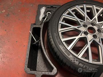 kit ruota di scorta per fiat 500x originale nuovo. compreso di vasche di polistriolo laterali, crick, chiave e tutti gli accessori che si vedono in foto. è presente anche la vite per fissare il ruotino di scorta sul telaio della macchina. per info o domande potete contattarmi.