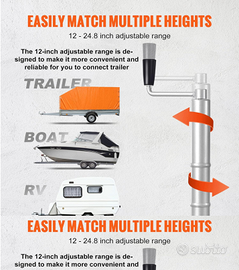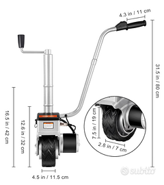VEVOR Ruota di Sostegno per rimorchio, 12 V, Portata Massima 2268 kg. (portata traino dichiarata dal produttore), Ruota di Supporto elettrico. Altezza Regolabile 30,5 – 63 cm; velocità 6,7 m/min.; Ruota in Gomma Piena diametro 20,3 cm. Come visibile da foto non è stata neppure sporcato il battistrada di gomma.