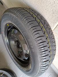 Ruota di scorta 14'' originale (pneumatico Bridgestone 175/65R14 82T - cerchione in ferro 51/2J14 offset 37.5 mm), con cric di sollevamento e gancio traino. Tutto originale, precedentemente in dotazione a una Ford Fiesta MkVI (2013) 1.5 TDCi 75CV, vendo per inutilizzo.