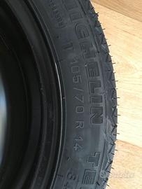 Dimensione cerchio 39cm 4 fori, distanza radiale tra i fori 10cm, dimensioni pneumatico come da foto 105/70 R14.