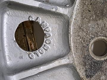 Cerchio Campagnolo originale dell' Alfa Romeo Giulia TZ del reparto corse Autodelta, al magnesio, era nuovo ma invecchiato con i suoi sessant' anni, in magazzino. Assente di rotture o sbeccamenti.