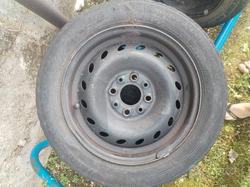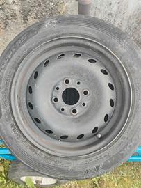 Ruote per Fiat seicento/panda, cerchioni neri in buono stato, solo uno presenta una botta che si nota in foto. Le gomme sono da cambiare, misure vibili in foto.