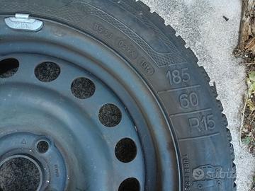 4 Ruote complete 185/60/R15 invernali cerchio in ferro, del 2014 con 6mm di battistrada.