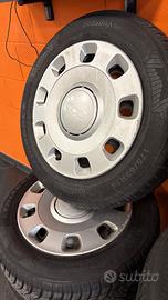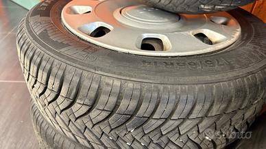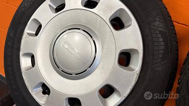 Cerchi con coppe e pneumatici quattro stagioni 175/65R14 per Fiat 500 e veicoli compatibili. Anno di produzione (DOT): 2022