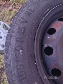 vendo ruote 4 stagioni misure 195/60r15..in buone condizioni.. compreso di copricerchi originali Fiat...e cerchi in ferro... montano su punto.. punto evo..musa..idea ecc..