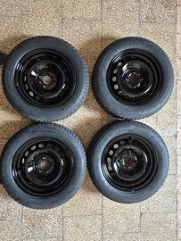 Vendo nr. 4 ruote complete di gomme in buone condizioni, vedesi foto, le ruote vanno bene per auto, fiat, opel ecc ecc. i cerchi sono stati verniciati a compressore e sono dritti e funzionali. un affare!.