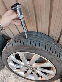 Vendo ruote complete originali Alfa Romeo Giulietta. I cerchi sono in ottime condizioni, con qualche piccolo segno di usura e sono misura 7.5J x 17 ET41 F65,1 PCD 5 X 110 (compatibile con molte auto Opel, Alfa Giulietta/159, Fiat 500X, Jeep Renegade, Saab) Le gomme hanno ancora circa 5-6mm di battistrada ed hanno percorso meno di 12'000 KM. MISURA: 225 45 17 215/45R17 MARCA:PIRELLI MODELLO: P7 CINTURATO C2 STAGIONE: ESTIVE DOT: 0324