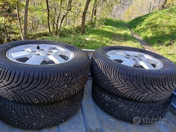 quattro ruote complete di cerchi in lega e pneumatici 4 stagioni 215 65 r16 m+s 102h Kleber usate pochissimo vendo. Contatti solo via Whatsapp al n. 327 8183886
