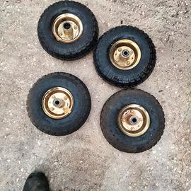 Vendo 4 ruote per carrelli piccoli in condizioni buone, solo che tra queste 4 ruote 2 ci vogliono dei cuscinetti. 10 euro a ruote.
