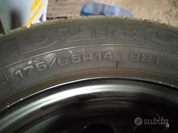 Vendo ruote per Fiat Panda, penultimo modello,cerchi in ferro praticamente nuovi,le gomme Goodyear estive con 50 km, hanno percorso dal concessionario all' officina