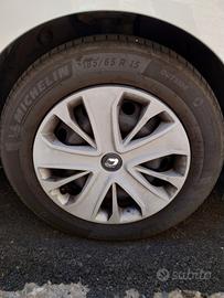 Cerchi in acciaio con gomme. Misure 185/65 R15. Due pneumatici Michelin primacy 4 consumati e due pneumatici Bridgestone turanza circa al 50%. Compresi 4 copricerchi Renault.