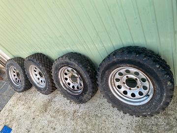 Ruote complete, erano montate su sj500. Hanno bisogno di essere sabbiate, ruggine superficiale. 15 x 5.5