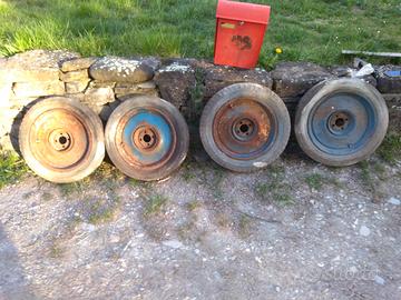 4 ruote originali Fiat Topolino, copertoni in buono stato misura 4,25/15. Alcune ruote presentano ruggine come in foto. Vendita in blocco.