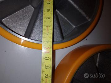 Vendo coppia di ruote in materiale PU per impieghi gravosi con doppio cuscinetto (800kg per ruora)nuove mai usate,le misure le vedete nelle foto.