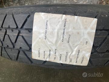 Ruotino pneumatico di scorta Continental T125/70 R18, PCD fori 5x114,3, compatibile principalmente con Honda, Kia, Renault, Hyundai, Subaru, Mazda. Mai utilizzato. Solo consegna a mano