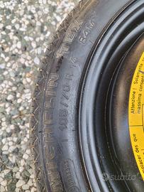 Vendo ruotino di scorta tubeless radial x della Michelin (Tex),misura j3,5" 105/70R14 84M max 80 km/h (diametro ruota 50cm) in ottime condizioni (mai usata)con kit comprensivo di cric,chiave e cacciavite originali W (valore solo del kit 50€)-distanza fori 4x100x57,1 ed ET/offset 38.