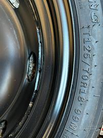 Ruotino di scorta nuovo mai usato per Audi A3. La gomma è del 2025. Le misure sono 125/70 R18. Il DOT del ruotino di scorta è 0925. Crick e ferri sono inclusi