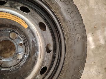 cedo ruotino di scorta punto ma compatibile anche con altre vetturemai usato con kit chiave e cric. misure in foto. prezzo 20€. misure 135/80 R14