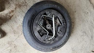 Ruotino minispare o ruota di scorta da 15 pollici completa di kit crik chiave e custodia, questo ruotino può montare a Fiat panda dal 2010 in poi, lancia y,dal 2003 in poi, Fiat idea, lancia musa, Fiat 500 3 porte,Fiat qubo, fiorino, Doblò ecc ecc,