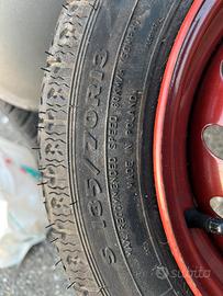 Vendo ruotino di scorta (ruota di emergenza) originale, ideale per utilitarie (es. Fiat Panda, 600, Punto o simili con attacco compatibile). L'articolo è in ottime condizioni estetiche, con battistrada praticamente nuovo, mai o poco utilizzato.