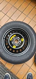Ruotino di scorta, completo di kit per sollevare l'auto, con sacca, crick, chiave bulloni, guanti ecc. Dimensioni compatibili con ruota da 19 e mozzo a 5 dadi BMW, equivalente a pneumatico 245/45/19 o simili x altezza/diametro.