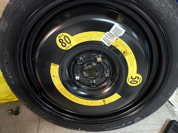 Ruotino nuovo mai montato originale VW 5 fori compatibile anche con Audi Seat Skoda completo di attrezzatura misure nelle foto