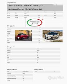 Set completo di Ruotino completo compatibile : -Suzuki Ignis 2 WD e 4 WD -Suzuki Swift 2 WD e 4 WD Il ruotino permette di raggiungere il gommista/officina più vicino senza dover ricorrere al carro attrezzi, può essere riutilizzato più volte per brevi percorrenze con una velocità massima consentita di 80 km/h. Le dimensioni ridotte permettono di riporlo in pochissimo spazio e grazie alla pratica sacca può essere posizionato all’interno del veicolo senza un vano dedicato alla ruota di scorta, oppure in veicoli con il vano occupato dalla bombola del GPL.