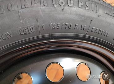 Ruotino T135/70 R16 nuovo, mai usato, gomma continental nuova. Compatibile con Alfa, Fiat e Lancia. 4 fori x 105mm Centro 65mm Ritiro a mano