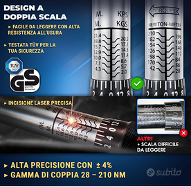 CHIAVE DINAMOMETRICA AD ALTA PRECISIONE S&R ➤ Chiave dinamometrica regolabile avente superato test di calibrazione di precisione ISO - DIN 6789. RIMBORSO O SOSTITUZIONE GARANTITA PER QUALSIASI PROBLEMA INATTESO.