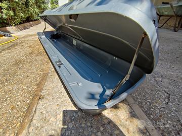 Box auto porta tutto, in perfette condizioni, Apertura a 2 pulsanti con chiavi, completo di barre portatutto attacco universale. Portata 50 kg 320 litri