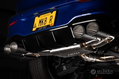 Realizzato con tubi in acciaio inossidabile T304 di alta qualità saldati TIG, questo scarico APR, dotato di tutta la bulloneria necessaria per il montaggio, si adatta senza alcuna modifica al downpipe della Golf 8 R. Progettato per conferire un tono aggressivo al motore 2.0 TSI e un aspetto più sportivo alla Golf grazie ai terminali di scarico in fibra di carbonio da 131 x 99 mm, questo catback ha un diametro primario di 3" / 76 mm, un design a basso profilo e valvole di scarico che funzionano con le modalità di guida OEM.