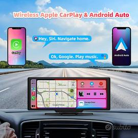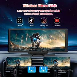 Schermo per Auto da 10,26 Pollici con CarPlay e Android Auto Wireless, Telecamera Anteriore 4K, Telecamera Posteriore 1080P, Bluetooth, Mirror Link, Trasmettitore FM, Cavo AUX, Scheda TF.