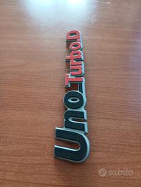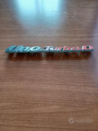 Scritta posteriore Fiat "Uno Turbo D " 1^ Serie, in plastica nero/rosso/grigio. Nuova