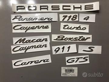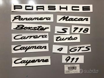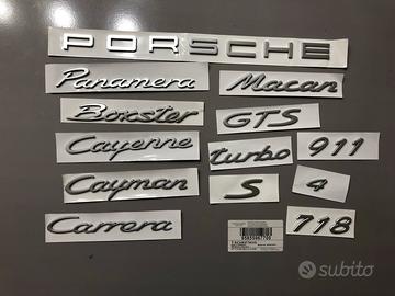 Vendo scritte porsche per tutti i modelli, nei colori: Cromato Grigio alluminio satinato Nero opaco Nero lucido I prezzi vanno da 30 euro della scritta più piccola agli 80 euro di quella grande porsche, i modelli 50 euro ( cayenne, cayman, panamera, ecc) La qualità è la stessa delle originali!!