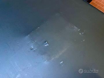 colore grigio scuro (la foto sembra blu), sedile perfetto, unico segno sul posteriore come si vede in foto.