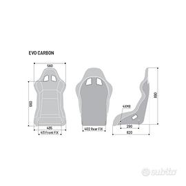 Sedile Evo Carbon Sparco, con scocca superleggera in fibra di carbonio e rivestito da tessuto antiscivolo per spalle e seduta.