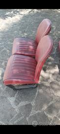 Coppia sedili anteriori ribaltabili per Autobianchi Bianchina berlina o panoramica, completamente originali e in buone condizioni, rivestimento in finta pelle rossa. Utilizzabili anche come base per un nuovo rivestimento.
